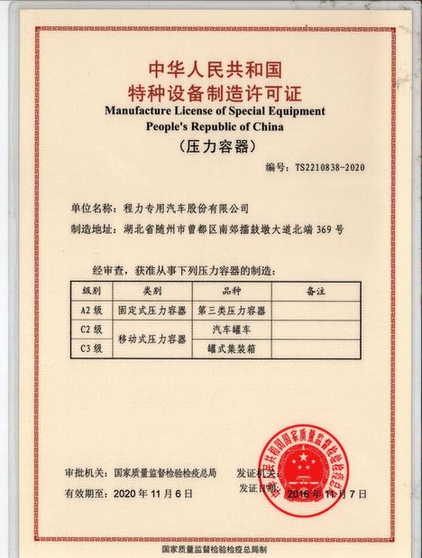 5. Manufacturing standards of LPG bobtail truck: GB-150, ASME VIII Division I U STAMP, CCC, ISO9001 : 2008